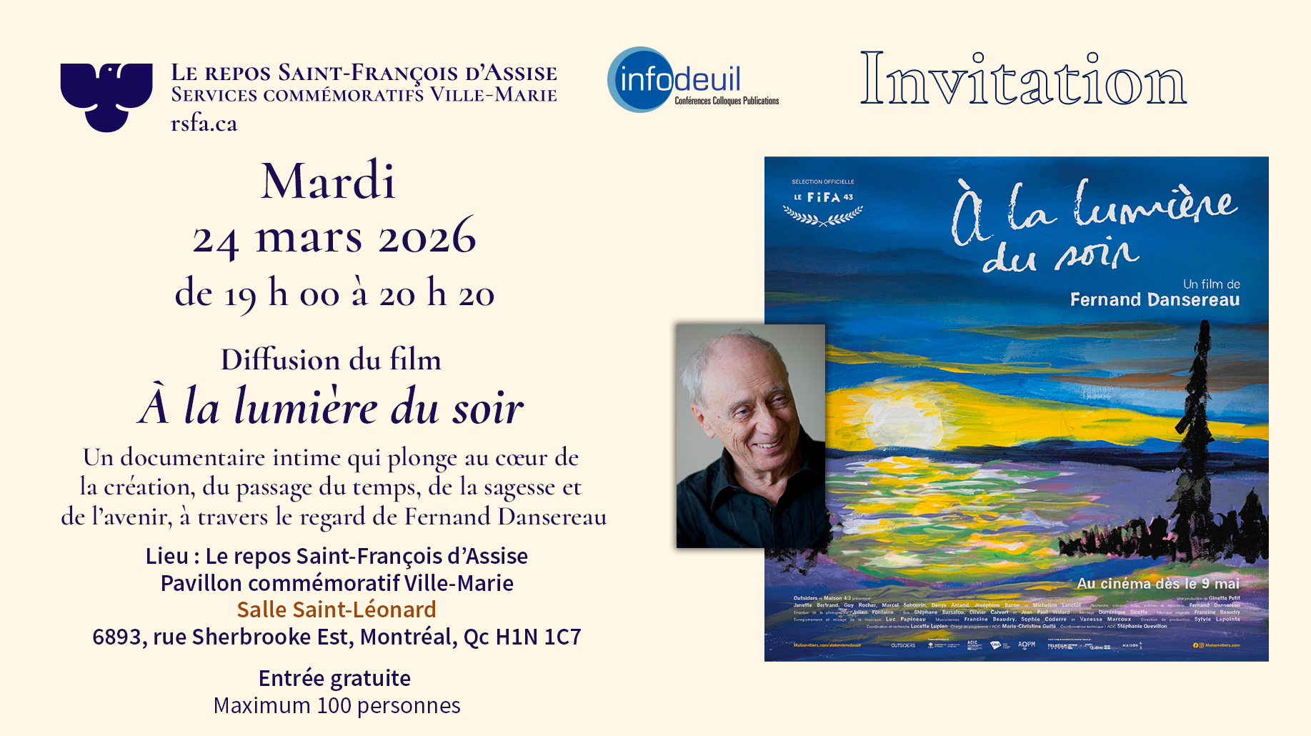 Diffusion du film : À la lumière du soir